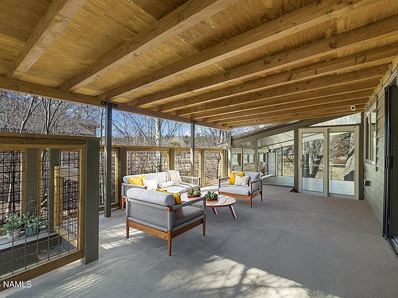 Inside, the home delivers comfort with natural gas heating and air conditioning, a cozy fireplace, and a gas stove. Unique features include a commercial dog wash station, electronic window blinds in the game room, and custom window treatments throughout. The property's location offers easy access to Campbell Mesa Loop Trails and is just minutes from downtown Flagstaff's amenities.
