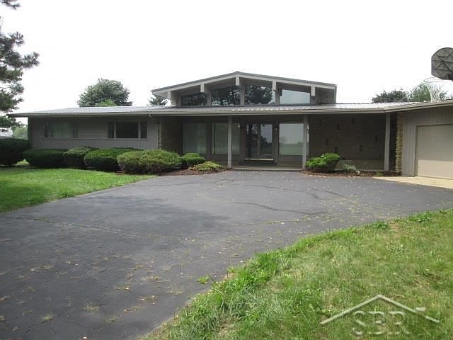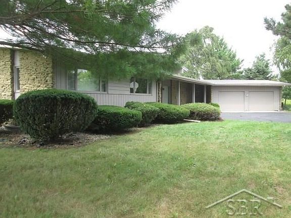 Contemporary style spacious ranch in a country setting, just outside of Owosso. Large living room with cathedral ceilings and a fireplace. Open kitchen design. Finished basement with a den, family room with fireplace, and a small 2nd kitchen. There is a large rear deck overlooking the back yard.