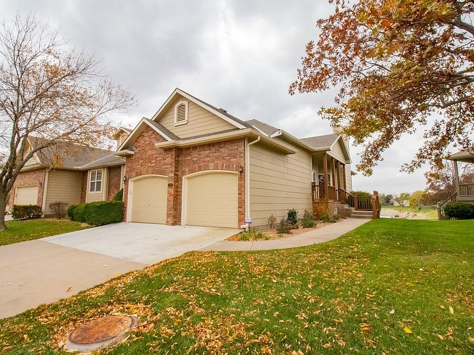 Beautiful 2,662 square foot twin home in the desirable Horseshoe Lake Addition! This prime location is close to restaurants, shopping, the Sedgwick County Zoo, and park along with easy access to I-235 and K-96. The home backs up to the lake featuring an attached two-car garage, a covered front porch, and a spacious covered back deck, that was recently painted, overlooking the lake. Enjoy all the lake amenities with your own private dock and 8-foot paddle boat! The interior of the home has an open floor plan with a living/dining combination with an electric fireplace and deck access. Next to this space is the kitchen with eating space and a Whirlpool oven and dishwasher. The large primary bedroom has tray ceilings and an ensuite with double sinks, a separate tub and shower, a private toilet room, and a walk-in closet! A second bedroom, full bathroom with a tub/shower combination, and a big laundry room with built-ins complete the main level of the home. Head down to the fully finished walk-out basement with a huge family/rec room with an electric fireplace and wet bar. The basement also provides a third bedroom, a third full bathroom, and ample storage space. There is new carpeting throughout the home! The Home Owners Association takes care of lawn service, common areas, lake, and snow removal. The property is offered subject to the rules, regulations, and restrictions of the Horseshoe Lake Homeowners Association, Inc. The home must owner occupied at all times and cannot be used as a rental.
