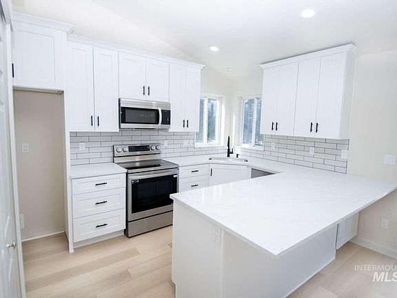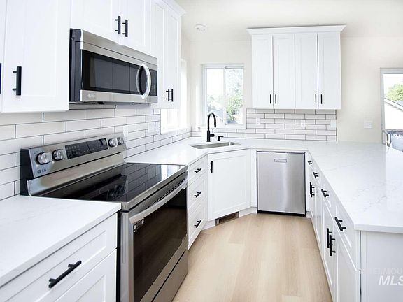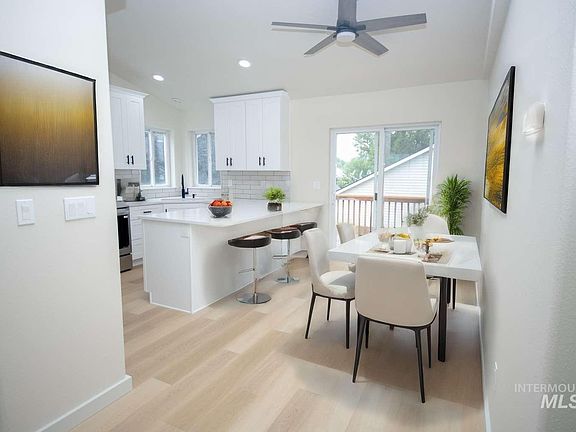 Welcome to this exquisite, fully updated home in Boise! This spacious 4-bedroom, 2-bath property features a beautifully designed kitchen with custom cabinetry, white quartz countertops, LVP flooring, and a generous pantry, all accented by new paint, trim, and hardware throughout. The open dining area flows seamlessly into the inviting living spaces, highlighted by an elegant staircase leading to the welcoming foyer below. On the upper level, you'll discover a spacious master suite with ample closet space and a second bedroom. The lower level offers a cozy living room, an additional kitchen, two generous bedrooms, and a second laundry room—making it perfect for rental income or accommodating extended stay. Step outside to enjoy the expansive backyard and large garden, enhanced by a refinished deck that’s ideal for outdoor gatherings. The 2-car garage is equipped with built-in cabinets for plenty of storage. With a washer and dryer included, this home is truly move-in ready. Don’t miss this opportunity!