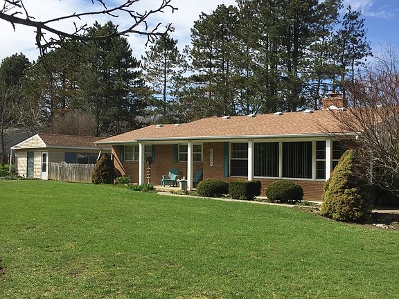 All brick ranch features 2 bedrooms, 1 bathroom, a large living room with fireplace. Attached 2 car garage, 24 x 40 pole bldg w/workshop, 24 x 48 pole barn with 12 foot door for R/V or boat storage, extra recreational room with patio, and flower garden with small pond. All appliances (refrigerator, stove, microwave, dishwasher, washer, dryer, and additional freezer and refrigerator in garage) are included with sale. New roof with 35 year shingles done last fall.