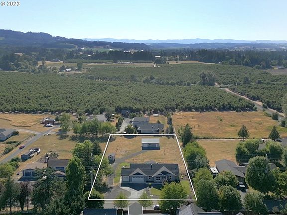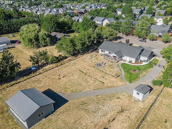 Modern farmhouse on a full acre nestled on the edge of town! This charming single level boasts an open and inviting great room, highlighted by vaulted ceilings and a cozy gas fireplace adorned with tasteful shiplap detailing. The well-appointed kitchen features modern appliances, quartz counters, a walk-in pantry, and an island that seamlessly connects to the dining and great room. A separate family room off the garage provides the ideal space for a media room, hobby space or home office. The primary suite offers a tranquil retreat with it's generous size and private bathroom featuring double sinks, a soaking tub, and walk-in shower. The beauty of this property extends beyond the main house. Stepping outside, you'll be greeted by a picturesque west facing backyard, offering the most breathtaking sunsets over the majestic Coast Range. Picture yourself hosting barbecues on the covered deck, roasting marshmallows by the fire pit, and enjoying the company of loved ones in this serene setting. The detached shop provides an excellent space for hobbies, and storage while the shed offers extra convenience for keeping gardening tools and outdoor equipment organized. Embrace a lifestyle of comfort and serenity by owning a slice of heaven on an acre of your own!