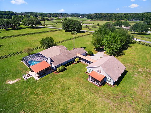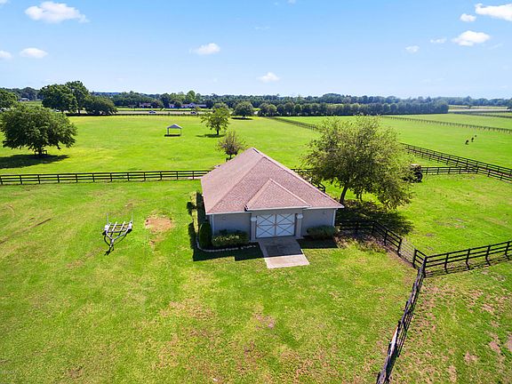 Incredible Estate on spacious 14 acres in one of Ocalas finest Equestrian Communities! Elegant 3BR/2.5BA split plan home with 2,700sf & screened in pool, built in 1999 (Fabian Construction). Lush Pastures and Landscaping with Gated Entrance and Magnificent Oak Studded Paddocks (4 total with automatic water troughs in each). Custom 1,241sf Barn with identical Architectural Design as the house, 3 tongue and groove stalls, tons of room for storage for tractor/equipment, tack room, plumbing, private barn yard & apartment ready. Also custom 1,439sf attached home with similar Architectural Design as the main house. Modern Pergola has awesome features for any outdoor event, amazing gas fire hearth is incredible. This Deed Restricted Community with Miles of Riding Trails and Gorgeous Common areas