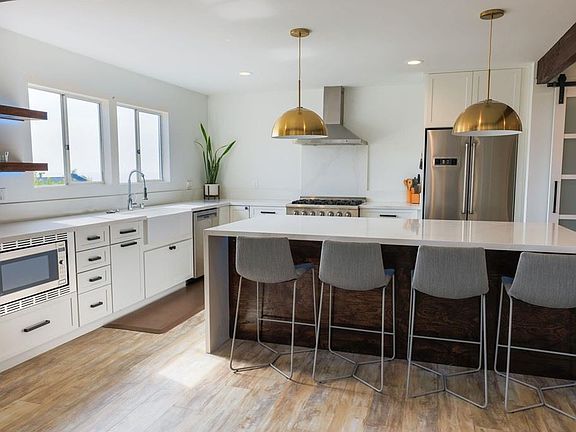 This two-unit Cardiff-by-the-Sea stunner is perched on a premium double lot (5000 sqft) in the famed walking district. With sit down whitewater views from Cardiff Reef to Seaside, this property has everything...and more. The main house has three bedrooms and two bathrooms (plus a cozy den that can be used as an optional fourth bedroom or an office), with vaulted ceilings and an open and airy west facing floorplan that maximizes views. Straight off the living room is an ocean view deck -- great for early morning surf checks and glowing sunsets. In the upstairs master suite, the Pacific's deep blue is framed in every window. Below the main house, you'll find a spacious two bedroom, one bath apartment, with a completely separate entrance and a private outdoor living space. From inside the main house, you'd never know it was there. The apartment has a full kitchen with all appliances, a washer and dryer hookup, and even a small office nook. Whether you're searching for multi-generational living or a place to rent to offset your mortgage, this bonus apartment is an extremely rare find in the walking district. Extensively remodeled over the last two years, everything in both units has been beautifully reconfigured. From the landscaping out front, to the quartz kitchens with stainless steel appliances and gas ranges, as well as all three bathrooms, this house is ready for you to move straight in. It also has an attached two car garage with alley access at the back of the property, so there's plenty of room for your e-bikes and surfboards. Because when you live in Cardiff overlooking North County's best surf breaks, you're going to need them.
