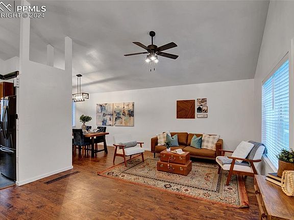 Renovated and ready for you! Soaring vaulted ceilings welcome you into flowing open concept Living space. Freshly painted interior, new lights and door hardware. Smart thermostat. Brand new Kitchen is finished with solid wood cabinets, granite countertops, slate tile floors, stainless steel appliances. Durable vinyl wood flooring and tile throughout the entire home. No carpet anywhere - perfect for easy cleanups! Primary Suite boasts private bath. Enjoy piping hot water in the huge soaker tub from the newly installed tankless water heater. Two guest bedrooms on upper level with renovated bathroom (with rail for your plants under skylight above) plus two additional bedrooms in the basement with another renovated bathroom. Step out from Family room with brick wrapped fireplace onto patio, perfect for summer BBQs. Bonus: newer exterior paint, roof, water heater, and basement plumbing. Two car garage has been fully insulated to save costs on heating during cold months. Make your gardening dreams a reality in fully fenced yard with plenty of room to play. Raised garden beds plus storage shed for all your tools. Oak Valley Ranch is a wonderful neighborhood, especially for those who enjoy being outdoors. Deer visit the front yard nearly every day, with larger animals stopping by on occasion under the cover of darkness. You're in walking distance of Ute Valley Park, Blodgett Open Space and numerous smaller trails weaving throughout nearby neighborhoods. Follow the canal up to Oak Valley Ranch Park or head over to Wilson Ranch Community Park which has tennis courts, a skateboarding area, a playground and a pool. Grab your morning coffee at Pike's Perk or pick up essentials at Walgreens. Just a few minutes drive to Safeway, Starbucks, Anytime Fitness and many other businesses. 10min drive to Garden of the Gods or I25.