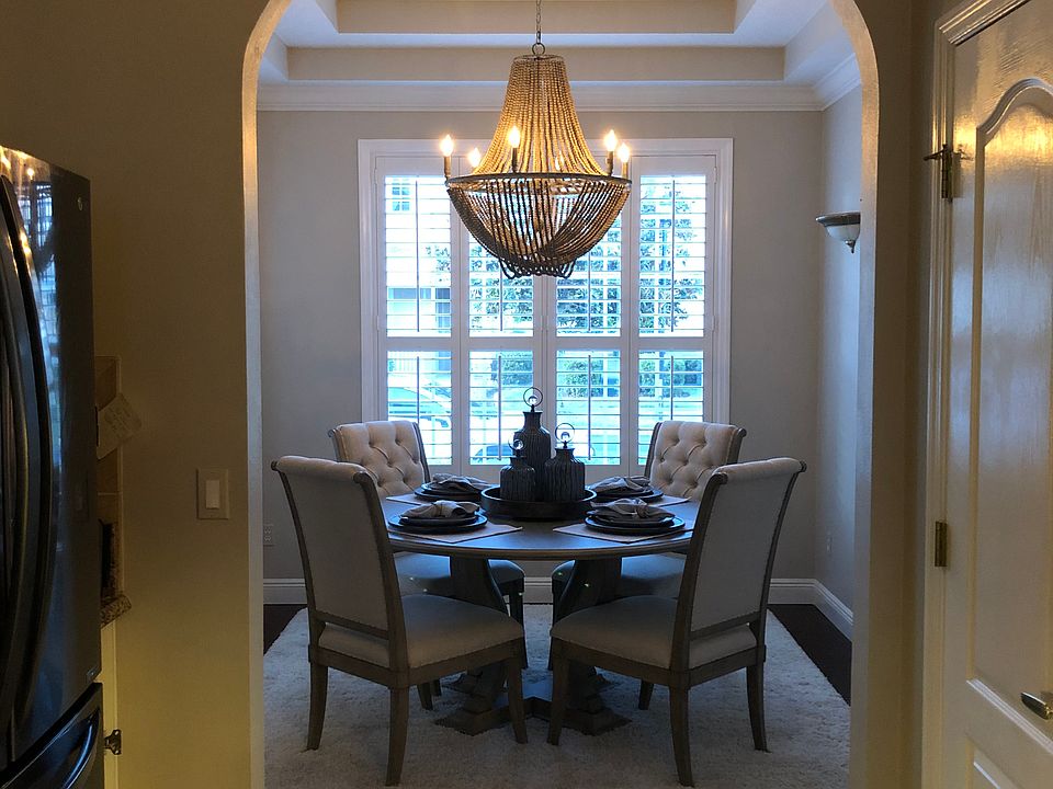 Enjoy maintenance free living in this stunning 3BR/2.5BA townhome! This townhome looks brand new, with one owner who has impeccably cared for and updated the home. It is located in a gated community with a community pool and has beautiful curb appeal. Inside enjoy an open layout with a formal dining room with tray ceilings, large kitchen and spacious living room overlooking a private courtyard. It has beautiful upgrades throughout including plantation shutters, new interior paint, upgraded light fixtures, crown molding, and new hardwood flooring throughout the first floor and in one bedroom. It also has a brand-new AC, hot water heater, & carpet. The kitchen has been beautifully updated with granite countertops, upgraded cabinetry with crown molding, and new stainless steel appliances including a double oven. Enjoy the beautiful living room with plenty of natural light or relax in the beautiful courtyard that features travertine pavers, landscaping, sunshades, lighting, and irrigation. Upstairs you will find three spacious bedrooms with custom closets. The master bedroom features a large closet and an adjoining bathroom with dual vanities, a garden tub, and walk-in shower. The laundry room is located upstairs for your convenience. There is plenty of storage space in the home including custom shelving for storage throughout the garage. This home is move-in ready, in a great community with a dog park and community pool. Just around the corner from fantastic shopping and dining.