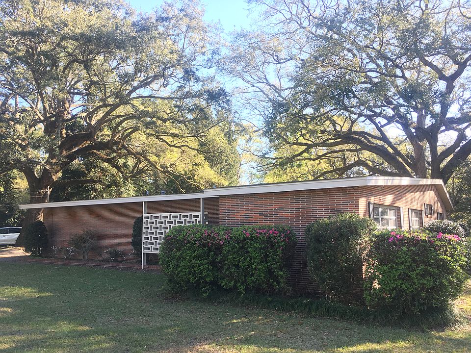 Mid-century modern home, situated on large corner lot with views of Dog River. Fenced in backyard, beautifully landscaped with rare varieties of camellia bushes, large oaks, and cedar trees. Nearly 1400 sqft of totally renovated living space with an additional 500 sqft two car attached garage. 2 bedrooms, Jack n Jill bath, dining/living room, and large kitchen and laundry room. Kitchen has been updated with new tile flooring, new countertops, and new stainless appliances. There is a bonus room that could be used as a second living room, office, or even a third bedroom. New bamboo hardwood flooring throughout with new tile in the kitchen and bath. Miami windows are in every room, making it easy to let the breeze from the river flow through the home. For more info or to schedule a showing for this amazing home in an amazing price range call 251-689-0157.