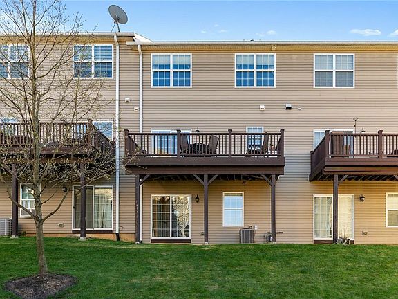 Immaculate Move-In-Ready 4 Bedrm, 3.5 Bath townhome in Haven Ridge, filled with many upgrades! With two master bedrooms, this unit offers potential for an in-law suite or private office/business work area. Kitchen features stainless steel appliances, granite countertops, center island, and custom pantry cabinets for ample storage. Open concept to dining & living rms with custom ordered hardwood flrs, gas fireplace, and bay windows, perfect for entertaining. Oversized Trex deck overlooks large courtyard, a rare feature in the community! Lower entry level boasts large foyer space with direct access to oversized two-car garage and storage closet w upgraded expansion. Lower-level Master BR with full-size bathrm, tub/shower, lots of closet space, and direct access to courtyard. 2nd master BR on 3rd fl with bay windows, tray ceilings, large walk-in-closet, tiled shower and soaking tub. 2 additional bedrooms served by hall bath. Washer/dryer, included in sale, conveniently located on this level. Bonuses include New Carpet (2023), Newer Roof (2016), Custom Hunter Douglas Blinds, Emporia Electric Car Charger, and upgraded Insulated Double Garage Door. Pride of ownership evident! Easy access to Rts 22, 78, PA Turnpike. A Must See!