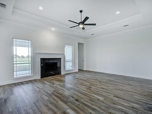 Beautiful almost new construction home built in 2023 with 4 bedrooms on a 0.75 acre lot and located in Hardin-Jefferson ISD. The floorplan is open concept with a split bedroom plan. Living room has tall tray ceilings with a gas starter fireplace. Kitchen features white shaker cabinets with granite counters, an island with bar seating, walk-in pantry, microwave, and gas stove! You'll love the larger primary bedroom with a luxurious en-suite bathroom sporting a soaking tub, separate walk-in shower, and an oversized walk-in closet. There's brand new carpet in the bedrooms! Outside is a covered back porch and tons of space in the yard! No HOA here is a plus! Call today to set up your private showing!