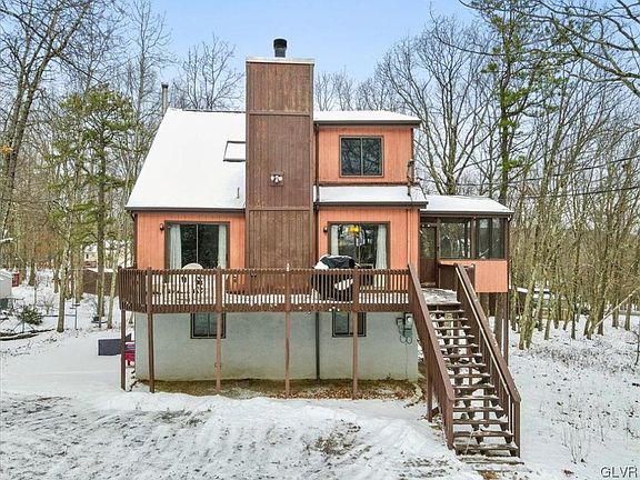 If you are looking for a Primary, Vacation or a STR home, Here it is... Located close to the main gate of one of the Poconos Premiere Communities, This is it. Three Bedroom 2 Bath Contemporary Home with a Full Finished Basement. Large Livingroom, Dining room and Kitchen with new Ceramic Floors. Wood Beamed Ceilings for that Rustic Feel. Wood Fireplace to enjoy anytime. One Bedroom and Full bath on the First Floor, also there is an Enclosed porch to enjoy the Great Out of Doors. Also there is a paver patio to the Left of the Home. Upstairs you have Two bedrooms ,Loft area and a Full Bath with Whirlpool Tub..