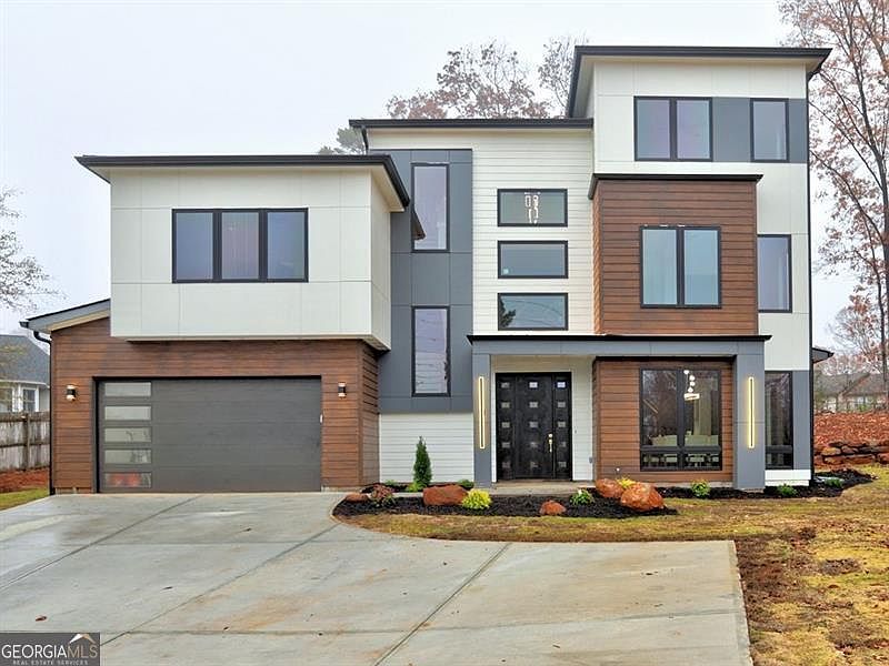 Feast your eyes upon this luxurious contemporary home. This new construction home is professionally crafted and aesthetically pleasing. Conveniently located in East Cobb's top-rated Lassiter High School district. Step into your dream home with an open foyer, 6 bedrooms, 6.5 bathrooms, entertainment space on the upper level that opens to a rooftop deck, and a large backyard with beautiful landscape. Kitchen has an expansive open-floor concept with lots of cabinetry, large island, wine cooler, butler's pantry, and stainless-steel appliances. The living room boasts a custom-built electric fireplace. Lots of windows for natural lighting. Each bedroom is generously sized with its own bathroom. You will love the master suite which features a beautiful accent wall, huge walk-in closet, and spa like master bathroom with double vanities, dual shower, soaking tub, and a smart toilet. This home is not in an HOA.