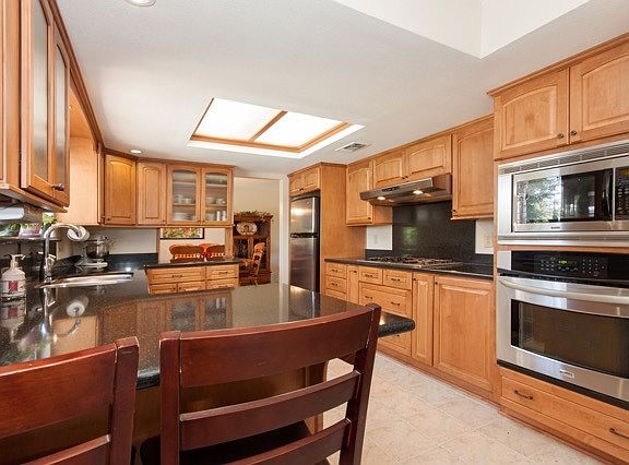 Originally a model home this house has been lovingly maintained and it shows. Starting with double mahogany doors that enter into the spacious living and dining room, an entertainers delight. The kitchen was designed to accommodate multiple workstations, 3 people can easily maneuver. This functional kitchen was recently remodeled including quartz counter, new cabinets, a 5 burner gas stove, a microwave convection oven, and all stainless appliances. Over the sink is a view of the back yard and the breakfast bar is adjacent to the family-room. Down stairs there is one bedroom and bath with access to the back yard and pool. The master is huge, with lovely view of the back of the property. The additional 2 bedrooms upstairs are spacious. The large backyard is the place to be with a covered patio, a refreshing pool with newer equipment. a raised garden, and fruit trees. Last but not least a 3 car garage that is finished out