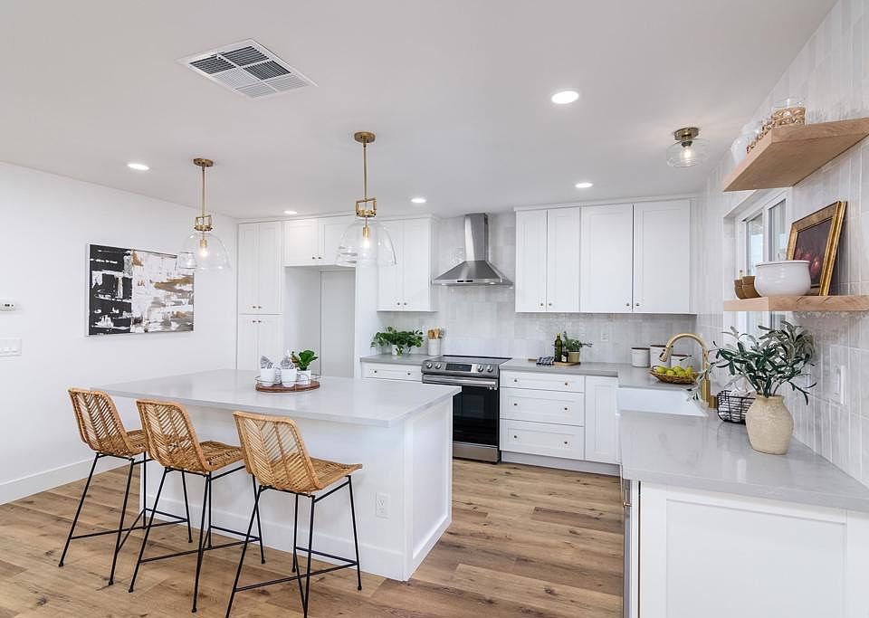 - Features: Kitchen Island, Pots & Pan Drawers, Quartz Counters, Stone Counters, Remodeled, Self-closing Drawers, Updated Kitchen, Utility Sink