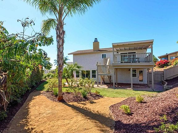 Seller willing to offer credit towards Buyer's interest rate buy-down! Ocean, lagoon, mountain & hill views! Smell the ocean and feel the breeze from this beautifully remodeled home located only 2 mi and less than 10 mins to the surf, sand & beaches of Oceanside as well as the pier's shops & dining. Tucked in a hilltop on a private cul-de-sac street, this home boasts peek-a-boo views of the ocean & Buena Vista Lagoon on one side and mountains & hills on the other! As you pull up to the adorable home, you're greeted by a huge near-quarter acre lot with an extended paver driveway that flows into a spacious pavered side patio and an idyllic covered porch entry to the front door. Enjoy water views from the light & bright living room with a modern cozy fireplace & custom wood mantle, as well as mountain/hill views from the kitchen, dining, covered deck, primary suite & backyard. The home has just been remodeled inside & out showcasing all new vinyl dual pane windows, luxury vinyl plank & tile flooring, shaker cabinets, quartz counters, recessed lighting and designer fixtures as well as a brand new full central heat/AC system. The upper level includes a convenient powder bath, a charming built-in wood bench in the entry w/ a shiplap accent wall & coat hooks, all your main living areas and a large covered deck overlooking scenic mountain views and w/ stairs down to the expansive backyard. Downstairs are all three bedrooms with both corner rooms boasting access to the backyard. The primary suite features dual walk-in closets, a slider to the open patio and a luxurious en-suite bathroom with dual sinks & a large designer tiled walk-in shower. Outside, the sprawling wraparound backyard boasts tropical palms throughout, multiple patios w/ a sizeable covered area and a large open grassy side yard that's great for entertaining. This is the coastal California dream home, come and view today!