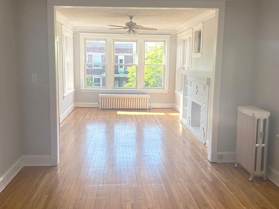 This is a beautiful, 1st Fl, spacious 2 bedroom + den in a great location! FREE HEAT and WI-FI INCLUDED! Feature's hardwood floors, large eat-in kitchen, separate dining room. 2 Large bedrooms, and has great closet space. Unit has beautiful vintage dark woodwork throughout and stained glass and built-ins surrounding the decorative fireplace. Beautiful yard in the summertime. Easy access to public transportation right out the front door. Optional Parking space available in back, as well as optional laundry. Walking distance to shops, restaurants & nightlife in Roscoe Village. Short walk to the Addison Brown Line. Cats okay.