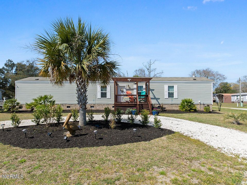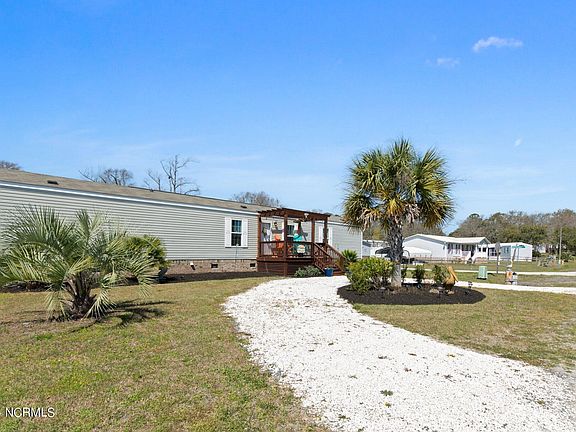 Step into your perfect vacation home away from home or just become a local at this perfect, low maintenance and well maintained single wide home with sheet rock walls throughout. Packed with all of the amenities you would want like all stainless appliances, access to the ICW and a great boat ramp, a fenced in back yard, and so much more. The community also offers family friendly amenities such as a picnic shelter, fishing ponds, and even fishing access of the intracoastal waterway. Enjoy the safety of a security system wired for samsung and a nest thermostat to keep up with temperature settings. The washer, dryer and other major appliances convey and a 12'x12' shop is wired up and ready to help with all of your outdoor projects. Plenty of boat and RV storage and a wrap around driveway make getting to and from the beach a breeze. A B-Hyve irrigation system keeps the well landscaped front yard looking its' best. And to top it all off, this manufactured home has been affixed to the Land it is on and is now considered real property to sell with the nice sized lot in this very desirable and conveniently quiet little nook of the Holden Beach Community. Come see what beach life is all about!!