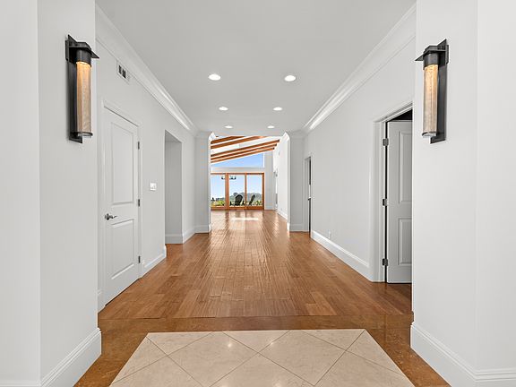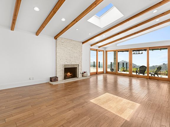 Behind a private gate, in one of Brentwood's most coveted communities, lies a striking, single-story Contemporary estate with commanding jetliner views stretching from canyon ridges to the shimmering Pacific Ocean. This meticulously restored residence blends architectural elegance with modern luxury, offering the utmost privacy and serenity. A grand motor court makes an impressive arrival statement, leading to a stately center hall and an expansive formal living room with a sculptural stone fireplace all framed by panoramic vistas. The formal dining room sets the stage for refined entertaining, while the chef's kitchen is outfitted with top-tier appliances, bespoke cabinetry, and an inviting breakfast nook. The primary suite is a sanctuary of light and space, with floor-to-ceiling glass that captures breathtaking views and a spa-inspired dual bathroom finished in white granite with stone tile shower and soaking tub. Rich hardwood floors flow throughout, while multiple outdoor patios provide the perfect backdrop for al fresco dining, fireside lounging, and unforgettable sunset views from Westwood to Malibu canyons, Catalina and the city lights for gatherings by the firepit. An extraordinary offering for those seeking design, privacy, and views without compromise.