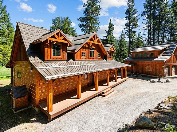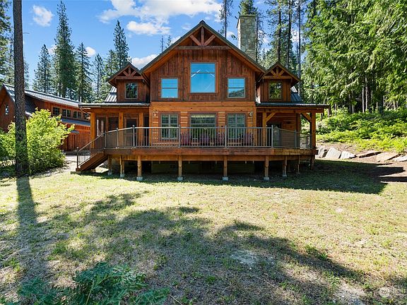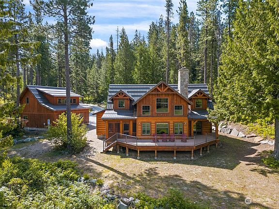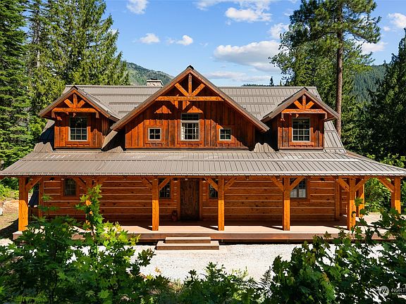 Gorgeous timber-frame home with timeless style, spectacular views, and unparalleled privacy! This furnished 3-bedroom, 2.5-bath home is set on 10 acres at Lake Wenatchee near the base of Dirtyface Mountain. It was meticulously planned and expertly finished down to every detail. Hand-hewn timber siding and interior beams, reclaimed wood floors and railings, Mickey Lee stone fireplace, soaring 20 foot ceiling, and soapstone kitchen countertops. The owner hand-crafted nearly everything - custom doors, cabinetry, shelving, furniture, and more! Living space above the garage is multifunctional, and ties seamlessly to the main home. Close proximity to a fun trail system for mountain biking / trail running, and only minutes from the lake.