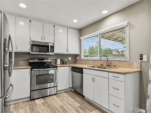 Tucked within a quiet cul-de-sac in the desirable Laguna Terrace community, this 3-bedroom, 2-bath home is clean, updated, and truly move-in ready. With a spacious 5,000 SQFT LOT and smart upgrades inside and out, it offers a seamless blend of indoor comfort and outdoor enjoyment. The first thing you'll notice is the incredible CURB APPEAL: lush landscaping, CONCRETE PAVER DRIVEWAY, and a charming front porch welcome you home. Inside, the OPEN FLOOR PLAN features durable LVP FLOORING throughout the main living areas, MODERN CEILING FANS, and recessed lighting. The living and dining rooms flow together effortlessly, with a DESIGNER LIGHT FIXTURE over the dining space and sliding doors that open to one of the home’s best surprises... the BACKYARD! Designed with entertaining in mind, the backyard features CONCRETE PAVERS, a BUILT-IN BBQ AND BAR, a COVERED PATIO with a CEILING FAN, low-maintenance TURF, and STACKED STONE WALLS surrounded by mature hedges for added privacy. It’s the perfect space to relax or host friends. Back inside, the kitchen is fresh and functional with WHITE CABINETRY, STAINLESS STEEL APPLIANCES, GRANITE COUNTERS, and a large window above the sink that brings in natural light. The hallway houses an INDOOR LAUNDRY AREA with full-sized hookups and leads to all three bedrooms. The spacious primary suite is cozy and inviting with plush carpet, a ceiling fan, two-tone paint, and a stylish BARN DOOR opening to the ensuite bath. Inside, you’ll find a WHITE SHAKER VANITY, QUARTZ COUNTERS, and a FLOOR-TO-CEILING SUBWAY TILE SHOWER with modern fixtures. Two additional bedrooms also offer backyard views and share an updated hall bathroom with similar finishes. Additional highlights include: an ALL-ELECTRIC HOME (a unique feature for the neighborhood) and CENTRAL A/C (recently added). Nearby parks, schools, hiking trails, and local favorites like Vanilla Street Bakery and Bru make it easy to enjoy life in the heart of Orange County. If you’re looking for a well-maintained, move-in-ready home in a location that blends convenience, comfort, and community, this one checks all the boxes. Welcome home!