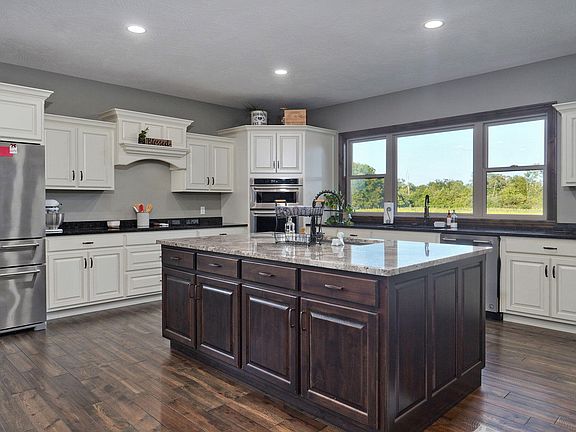 This custom built one owner home is absolutely spectacular. You can tell the love and pride of craftsmanship of this fantastic home. The exterior is brick, stucco and stone. Fabulous Curb appeal. Custom cabinets. Solid three-quarter inch hickory floors. Granite in the kitchen and bathrooms. Beautiful wood-burning fireplace. Walk-in pantry in the kitchen. Also two islands. And both of them have granite. There is a nice Storm shelter in the over sized 3 car garage. Very desirable beautiful Kitchen!!!! Kitchen, dining and living is very large and open. KitchenAid appliances. Master bedroom is huge. Walk-in closet is like another bedroom. Master bath features lots of storage walk-in shower and a nice air bubble soaking tub. There is an office/3rd bedroom with no closet. It does have a sauna that stays. The second bedroom has a nice walk-in closet and its own bathroom as well. Then there is a large open loft that could easily be turned in to another bedroom or two,/2nd living area, a den/man cave, whatever you choose. There is a detached garage/shop for all of your toys in extra storage. There is also a robot mower that stays. There is spray foam in the garage. The outdoor covered/screened in patio is to die for 900 ft.. Great for entertaining and cookouts. Even has its own bathroom. Which makes it great for people coming in from the pool. Yes ! there is a 20 x 40 saltwater pool that is absolutely amazing. It has a slide, basketball goal, lights, and an automatic cover. There is also an underground pet fence. A ROBOT mower And fantastic nighttime lighting as well. Now, with that said all of this sits on 7.6 acres M/L. Deer are everywhere, turkey and lots of wildlife. large pond stocked with all kinds of fish!! call Today...