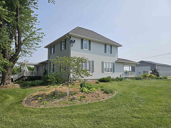 "Pride of ownership" shows in this solar powered acreage located between Protivin and Cresco, just west off of V58. Large family home features oak cabinets, breakfast bar and appliances are included. The living room has hardwood floors and is open to the eating area. Master bedroom has access to the backyard deck and bath with jetted tub and shower. Laundry and 1/2 bath finish off main floor. The second level has 3 bedrooms, 3/4 bath and walk-up attic. There is a bonus room at the top of the stairs that could be a play area, sewing room, office etc. Home has vinyl siding, leaf guards on gutters and steel shingles. The 2-car garage has in-floor heat, water and has basement access. There is a covered porch in the front of the home perfect for morning coffee and a deck with pergola and patio area in the back. The large 34' x 48' x 14' machine shed was built in 2019 and has heat & water. There is an additional 2 car detached garage with opener along with several other outbuildings, windmill and 2 steel bins. Solar was installed in 2021. Security cameras installed this spring will stay. There is an established grove along with plenty of space and buildings for a hobby farm, animals and more. You will enjoy the abundant wildlife too! The property will be surveyed, at sellers' expense when seller & buyer come to an agreement. Check out all this acreage has to offer.