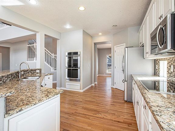 Perfect Parker Style Living in this beautiful & spacious South facing home with a cozy fireplace and corner lot backyard with mature trees and professional landscaping. With open space behind you as well as to the West you can enjoy your privacy! Move right in to the highly sought after Canterberry Neighborhood! Your updated throughout home in this pristine community is ready for new memories. Interior paint, carpet & tile all less than 1 year old. Enjoy the partial mountain & sunset views from the kitchen dining area or your backyard which features a retractable remote control awning and pre-wired for a hot tub. With built in Bose Speakers in the living room that opens to the kitchen & outdoor space, entertaining is a breeze. With vaulted ceilings and several large windows, plenty of natural light flows perfectly throughout the home. With a Southern Facing home You can enjoy the winter months with snow melting quickly off your driveway. The upstairs features a Primary Suite with Mountain Views and 2 large additional bedrooms with walk in closets and a loft while the main floor has an additional bedroom / office space. Looking for a way to expand if needed? The basement has framing & insulation already completed for 3 conforming bedrooms, 1 bathroom, storage & living space (saves you thousands) and is ready for you to finish out & make it your own. With this home 1 block to the Pool & Playground and the award winning Black Bear Golf Course, it is a perfect spot to enjoy the warm summers. Enjoy biking or walking? The trail across from the home puts you just minutes from Downtown Parker with shopping, dining & entertaining, this home has everything you are looking for! Hurry & See today as this one won't last long!