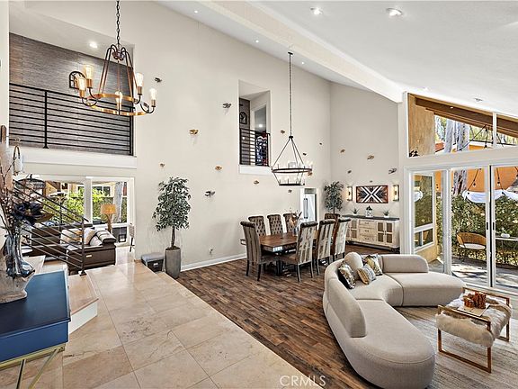 Stunning and thoughtfully remodeled home offers a perfect blend of modern amenities and versatile living spaces. Immediately the picturesque curb appeal, iron glass-inlay double front door, extra large driveway and 3-car garage sets the stage for what's to come. The home's entrance into the formal living and dining room boasts a 2-story vaulted ceiling, modern upgraded stair rail, a warm natural glow that is reminiscent of golden hour and a cute outdoor boho nook. Continuing to the remodeled and timeless kitchen that's open to a dinette area and family room which all frames the outdoors with floor to ceiling windows and doors. The custom wet bar, ample kitchen counter space and open floorplan make this home ideal for creating memories with gathered family and friends or quiet nights keeping everything close at hand. The downstairs bedroom and full bath completes the downstairs before heading out back to where you'll find an entertainers oasis. Boasting areas to play, dine and even wine...in the jacuzzi. Upstairs are 4 additional bedrooms. 2 bedrooms were combined to make a media/flex room and could easily be converted back. The primary suite has a custom walk-in closet to display clothes, shoes and purses to be easily accessible. The home has over $125,000 in upgrades. Additional items include dual pane windows and doors, tankless water heater, designer lighting, flooring, HVAC, electric in the garage for an EV and low maintenance landscaping. Additionally, the highly rated elementary is a STEAM Magnet school and is walkable. As well the middle school and high school are an easy walk. This home also comes with membership to the exclusive Beach & Tennis club. Here you'll have access to a Jr. Olympic pool, a smaller pool and areas perfect for children including the recently improved beach lagoon. Enjoy any of the 5 tennis courts or try your skill on the pickleball court. The club also provides a fitness center with classes. There's a sand volleyball court as well as basketball. There's also a preschool here. The club promotes regular events to create community among its members. This is more than a home. It's your private retreat and community dream. Welcome to your forever scene.