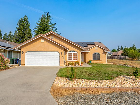 Very desirable location in Lake California just steps away from the lake and picnic area. This house feels more spacious with vaulted ceilings and open layout. Enjoy the gorgeous granite slab counters in kitchen surrounded by custom cabinetry including extra large pantry storage area. The 2 car garage has additional section for extra storage or workshop area. Very low maintenance with stucco and tile roof and huge energy savings with solar. Fenced backyard includes large covered patio area.