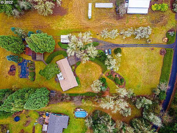 Serene park-like setting. 3 bedroom/2.1 bath ranch sits on 1.88 acre of flat, usable land close to town serviced by fiber internet! Oversized shop (22x24) carport + 2 car garage = plenty of room to park your RV & toys. Inside is nicely updated with laminate floors, granite counters, stainless steel appliances & more. Formal living room as you walk in & then open kitchen/dining/family room w/ wood stove & slider to covered patio. Large laundry room. Storage in garage.