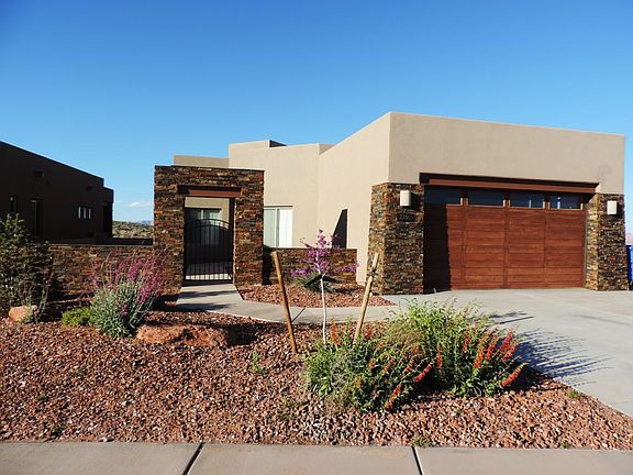 This newer built home was finished in 2011 and has it all.....3 bedrooms, 2 baths, eat-in kitchen with custom cabinets, Italian tile floors that replicate wood, granite counter tops throughout the home and a large living room with patio doors that take you to the Lake Powell View of a life time!! Owners have never occupied but built a semi custom 1613 sq. ft home with a wood workers dream garage! You will want to own this home AND the view that comes with it!