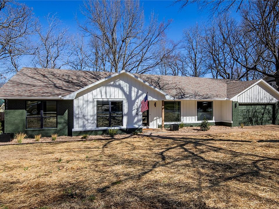 Come see this Fayetteville gem in the idyllic East Oaks neighborhood! This full renovation by Nall Custom Homes and ReJennaRation, LLC is in the heart of it all - central to downtown, uptown, the flyover to I-49 and walking distance to Gulley Park! The house has a simple, open floor plan with vaulted living room ceilings, plenty of room to entertain and a cozy wood-burning fireplace. Major updates include all new low-E windows and doors, Core-tec pro luxury vinyl plank floors, Delta plumbing fixtures, gutters and rain chains, new landscaping w river rocks and drainage, new electrical outlets and switches. In addition, all new Masonite doors and trim, 3 cm quartz counters and backsplash, designer lighting, new hardware, tiled showers, frameless glass enclosure, white oak beams, covered red wood deck, fluted ceramic fireplace and hood vent surround, Fabuwood stained cabinetry w/ maple interiors and soft close. If you've been waiting for an updated home with a great location and plenty of character, this is it!