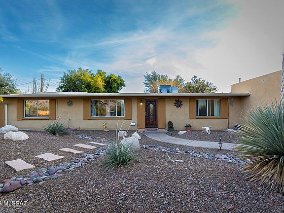 Here is a spectacular 4 bedroom 2 bath adobe brick home located near the Campbell Corridor, 10 minutes from U of A, a block away from ''the Loop bike path'', adjacent to Winterhaven, shopping and more. It offers large bedrooms, 2 bonus rooms, 2 living areas, 1 with a beehive fireplace, large kitchen with ample counter space and cabinetry. The 600+ sq ft garage has been transformed to a 4th bedroom, bonus room, and storage area. The motor, tracks and door are accessible should the new owner desire to revert this space back to a garage. This large corner lot provides 3 sections of backyard; including a dog run connected to a doggy door, gazebo over an elevated, exposed aggregate concrete patio, and a fenced-in sparkling, deep pebble tec pool. On the westside of the property you'll find the 10x20 ft storage shed with tons of storage shelving and electricity. There's plenty of parking with a circular gravel drive and exposed aggregate driveway. More convenient parking is right off of Jackson Rd for guests. Come check out this unique Richlands Heights home that offers many improvements. The HVAC, water heater, pool pump, roof coating and main water line have all been maintained or replaced in the last 5 years. Not to mention the water softener and filtration system that dispenses plentiful drinking and soft water. This home offers almost 2900 square feet, mountain views, and a great location! Come see for yourself today!