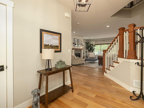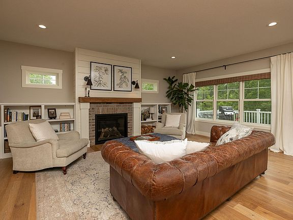 Perfect"10" in every way! This highly customized "Modern Farmhouse" is on a dead end & backs to wooded park & city land . 4 bdrms & laundry on the upper. Walkout lower has 5th bdrm, large family room w/ 2nd fireplace & workshop/excercise area. Stunning details are found in nearly every room: Shiplap accents, banquette seating in informal nook, built in bookcases, barn door that hides a walk-in pantry, butlers pantry, and wide plank white oak wood flooring continues through the upper hall. Main floor study w/ double glass doors. The custom white kitchen is a showstopper w/ floating shelves, quartz tops, upgraded stainless appliances & the expansive island. Spacious composite deck w/ stairs overlooks private wooded area behind the home. Decorator level choices for all of the lights, hardware and bathroom tile. Primary bedroom & stylish private bath w/ stand alone tub & walk-in shower w/ full glass front leaves nothing to desire. Notice garage is almost 1000 sq ft. One of a kind location!