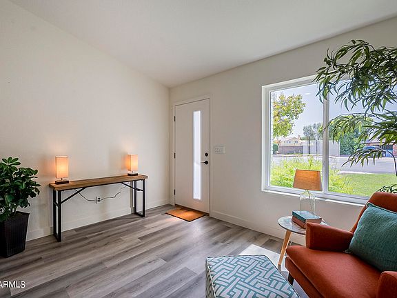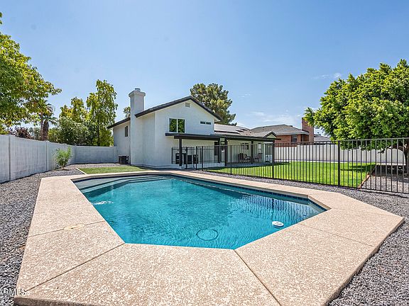 Marvelous, fully-remodeled, 4 bd/3 bath house with a pool, new roof, on a cul-de-sac 1/4 acre lot, in a sought-after NO-HOA community! High-end finishes include: luxury waterproof vinyl flooring throughout, floating vanities, designer tile, beautiful kitchen with new stainless steel appliances, gorgeous tile backsplash, white Quartz book-end matched waterfall counters, and eat-in kitchen. Two ensuite bedrooms with double vanities, walk-in showers and designer finishes, plus large walk-in closets in all bedrooms. Tankless hot water heater, new vinyl double paned windows, and solar. You'll love the resort-style backyard highlighting a covered patio, a pebble tec pool with cool-decking and designer landscaping! Near Scottsdale, Tempe, and Chandler. Don't miss it!