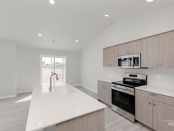 This brand new home located in vibrant Kuna, Idaho welcomes you with open arms. Turning the key and opening the door will be a pleasure every day in the Palisades 1722. The entryway wows with 9-foot ceilings the moment you enter inside. Three of the four bedrooms are snuggled in the corner with quick access to a full bathroom. Straight through the entrance will lead you to the open concept & vaulted kitchen, living room, and dining room. The kitchen comes with stainless steel appliances and stylish solid surface countertops, adding both functionality and aesthetics to the kitchen. Large windows throughout bring in abundant natural light, making the space feel even more inviting. The primary suite is tucked away at the rear of the home and offers the promise of rest, relaxation, and solitude. With its perfect layout and stylish finishes, the Palisades offers both comfort and convenience. Photos are of the actual home!