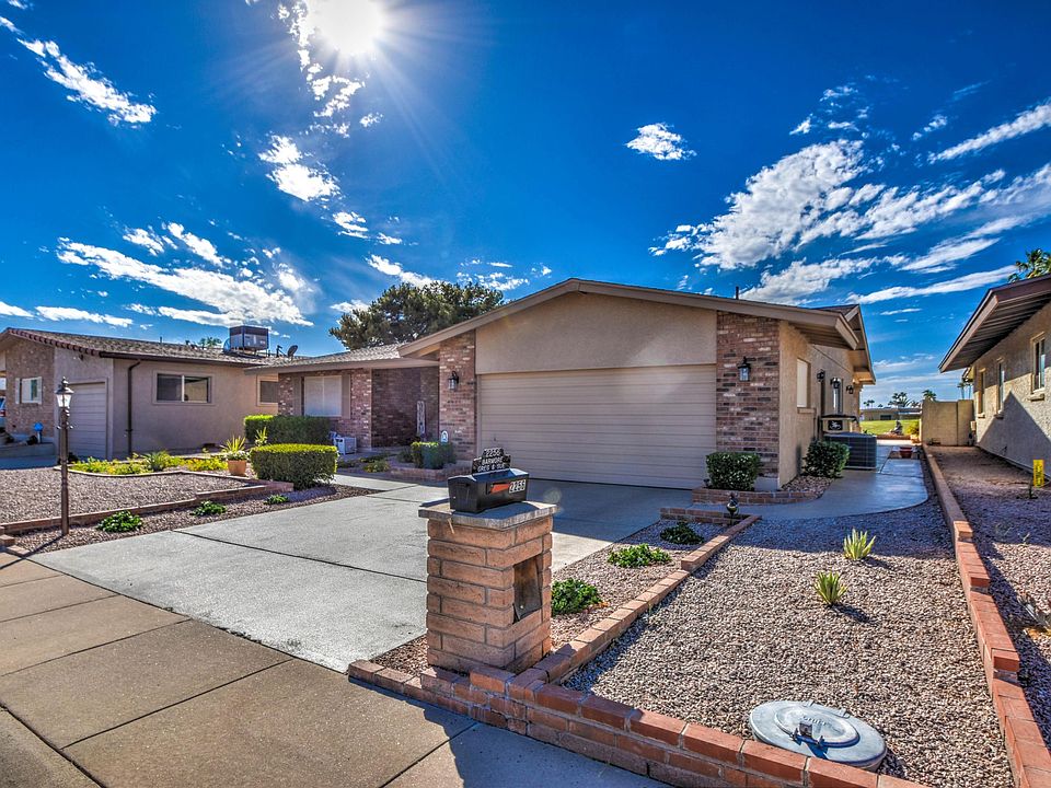 Walk into a completely remodeled block home on the 18th fairway of Apache Wells Country Club. Once through the doors you will see the green course through the 12' sliding glass door. Very open floor plan that flows into the Stunning kitchen with a huge island with lots of storage. Located on the 18th hole in the Apache Wells Golf Community. This fully updated home is conveniently located to the Clubhouse, Pool & Spa, Fitness Center, Pickle-ball courts & the new multi-million dollar Activity Center. Beautifully decorated, this home offers exceptional sunsets and mountain views.
