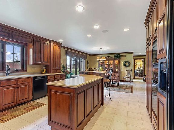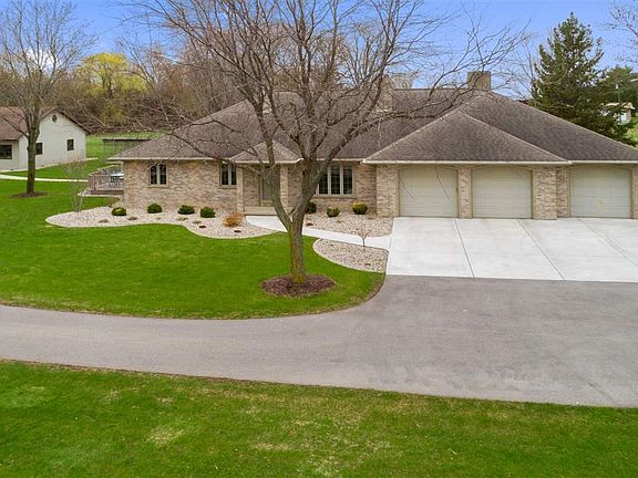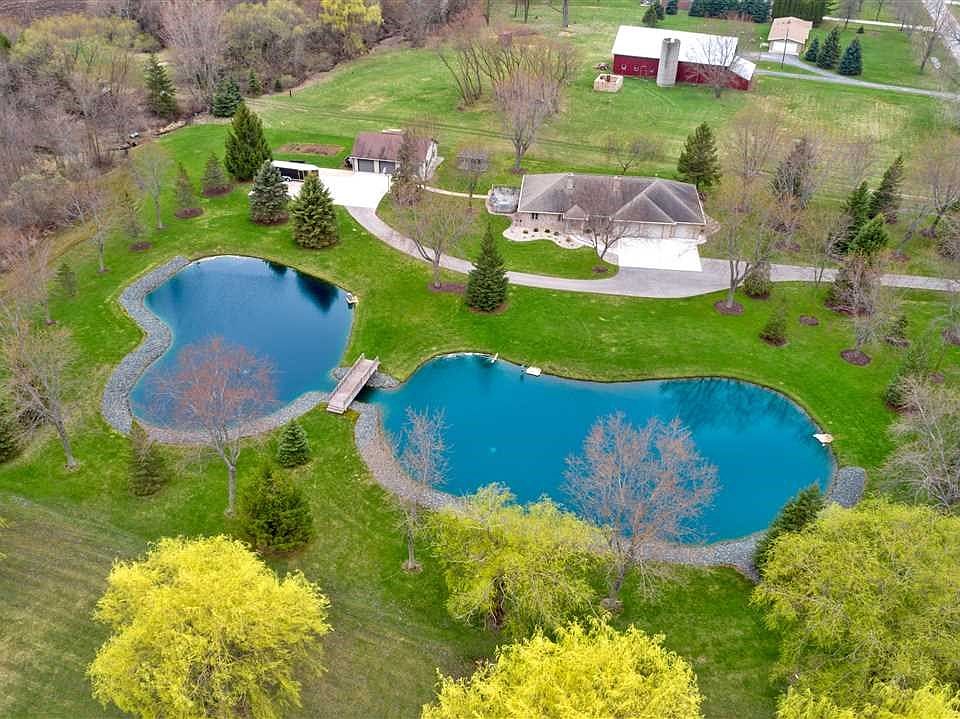 Stunning all brick 1-Owner Custom home designed w/attention-to-detail. Aprx 5+ Acres of land & a beautiful stocked & aerated pond. For those who love nature, take a stroll over the bridge & enjoy your park like yard! Gorgeous custom cabinetry through this home. Great rm w/vaulted ceiling & built in entertainment/wb fp wall! Sunlite kitchen w/raised island Corian tops Jenn-Air appliances. Executive office w/built-in show stopping cabinetry. 1st fl laundry rm w/storage cabinets. Finished LL w/family & game rm, full bath & bar & access to garage. Detached heated garage w/water & workshop!