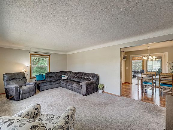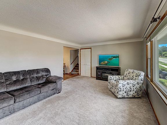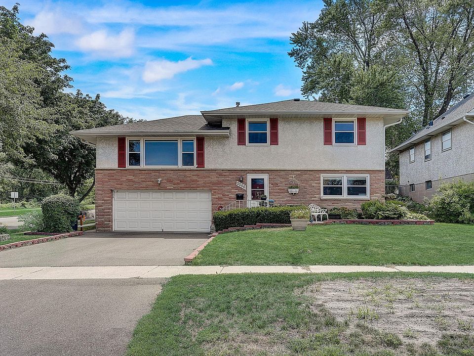 Discover a charming split-level home on a spacious corner lot in Saint Paul! This inviting property features a main level living room, kitchen with hardwood flooring and stylish countertops, stainless steel appliances, and a spacious sunroom with skylights. Upstairs, find 3 bedrooms and a bathroom. The lower level offers a bonus room with French doors and laundry area with abundant cabinetry. The beautiful backyard boasts a deck, fire pit, storage shed, and desirable water feature. Enjoy close proximity to Battle Creek Regional Park and Dog Park. Don't miss out on this delightful home!