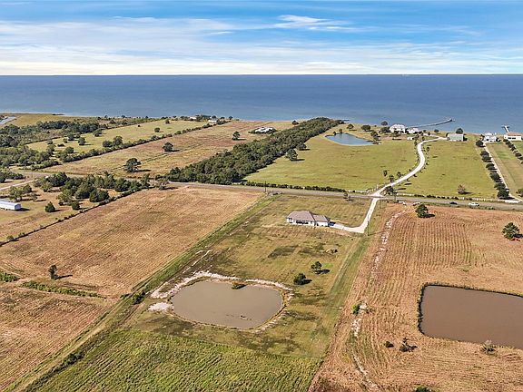 The best of both worlds here! Serene bay view out front and a picturesque pond and nature view out back! Sitting on four beautiful acres, giving you space to breathe, relax and dream big! Extended back patio is perfect for morning coffee and early sunrises, while the front awaits the best evening sunsets! This time of year paints the sky the best for you to arrive home to! Move right in and enjoy country living with the opportunity to take advantage of the acreage for future expansion. A true retreat welcomes you here! Split floor plan tucks the primary bedroom on one end of the home for true privacy, with two other bedrooms and full bath at the opposite end of the home! Office can also be a fourth bedroom! Living space flows seamlessly with the grand kitchen; all overlooking windows along the back of the home! Garage tucked to the side for that clean, high-end curb appeal that shines! This floor plan allows relaxing while making it perfect for central gathering and cooking!