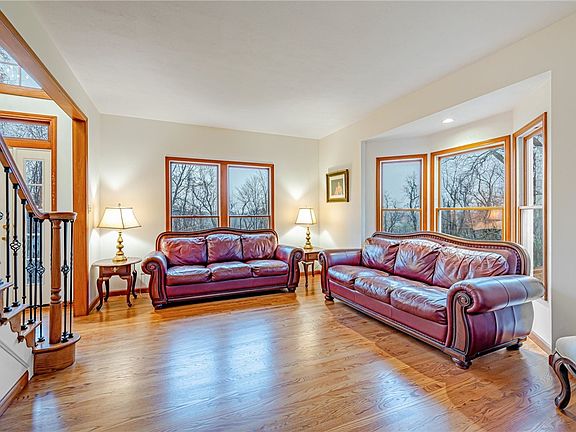 Be the second owner for this stately home nestled on a private, tree-lined 3.76 acre parcel in Hampton Township!~The grand two-story entry greets you in style with beautiful hardwood floors that extend throughout the first floor~Extra large windows throughout the house brings the outside in & makes the entire house light & bright~The kitchen offers a 12 foot island with great space for seating as well as space to prepare your favorite meals~The built-in oven, gas cooktop, quartz countertop & stunning wood cabinetry will please the chef~The family room offers a vaulted ceiling, floor-to-ceiling brick fireplace, large windows, hardwood floors & views that will take your breath away~The woodwork & six panel doors throughout the home are beautiful~The primary suite is a sanctuary with plenty of space for a sitting room, vaulted ceiling, two walk-in-closets, soaking tub & separate sinks~An updated hall bath with two sinks & three additional bedrooms with large closets completed the 2nd fl!