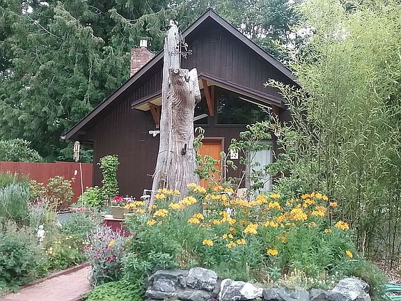Craftsman cedar, 2 BR, new natural gas fireplace, skylights, loft, spiral staircase, 1 Bath, new laminate flooring throughout; comes with a Detached Mother in Law Apartment of 500 sq. ft, full bath, kitchen, living room, sleeping loft, 12 acres of woods behind house designated OPEN SPACE, very private setting. There is also a 12 foot X 16 foot toolshed in backyard.