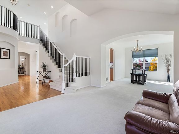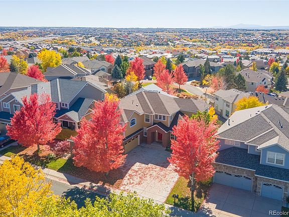Rich with features for outdoor enjoyment, & convenient to all local amenities. Amazing Views of Pikes Peak & the Front Range! This 6-bedroom, 4.5-bathroom found in the Saddle Rock North community is a home you do not want to miss! Exterior includes newer paint, large west facing composite deck & inviting covered patio below with easy access from above or the walk out basement! The interior includes a grand 2 story entryway, hardwood & laminate flooring, an open layout, neutral colors, high ceilings, & gas fireplace in the great room. The kitchen promises many-a-great meal, with natural light, mountain views, open layout with island, pantry, double oven, & a newer refrigerator. There is also a living room & dining room! Private office also on the main should you work from home. Upstairs you will find the primary bedroom which includes a walk-in closet, & private bath with separate tub & shower & more mountain views! You will also find a loft with views further than the eye can see, & two secondary bedrooms - One with a walk in closet & en-suite 3/4 bath & the other with a huge walk in closet & full bath which opens to the loft. Do not miss the newly finished Walk-out basement which includes laminate floors, wood look tiled floors in the new gorgeous 3/4 bath, new paint throughout & additional lighting which can be dimmed depending on your mood. Guest quarters boasts three additional bedrooms. Home Theater room could also be used as a non-conforming bedroom should you need that extra space. Tons of storage in utility room! Do not forget the attached 3 car garage & high ceilings! Close to parks, trails, Saddle Rock Golf Course, Aurora Reservoir, & a short drive to tons of shopping, restaurants & all the amenities of Southlands! Keep in mind- the highly sought after Cherry Creek School District! Easy commute to DTC means more time to enjoy the relaxing view of Pikes Peak & the Front Range. Check out the 3D tour https://my.matterport.com/show/?m=XPQvjS3smUE&mls=1