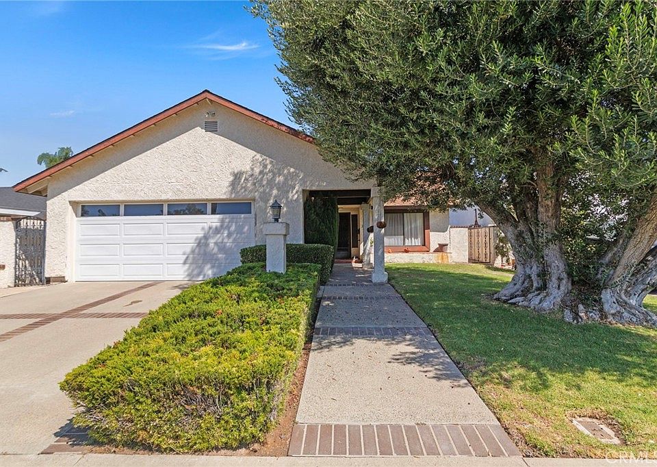 Welcome to this single-story home tucked away in a peaceful cul-de-sac neighborhood of Laguna Hills! This beautiful residence offers a spacious floor plan, timeless features, and endless potential to make it your own. The inviting living room showcases a brick fireplace, wood-style flooring, and a large front window that fills the space with natural light. A charming dining area flows into the kitchen, complete with tiled counters, abundant cabinet storage, and a breakfast nook with sliding doors that open directly to the backyard. The primary suite includes mirrored closet doors, a private bath with a walk-in shower, and a view of the backyard. Two additional bedrooms and a full bath provide comfortable space for family, guests, or a home office. Step outside to enjoy a private backyard retreat featuring a large covered patio, perfect for dining, entertaining, or relaxing in the shade. The yard offers beautiful landscaping, privacy fencing, and plenty of room for gardening, pets, or play. Additional highlights include an attached 2-car garage and a wide driveway. This home offers privacy while still being just minutes from top-rated schools, local parks, popular restaurants, and easy freeway access to both the 5 and 133. With solid bones and a fantastic location, this property is a rare opportunity to customize and enjoy all that Laguna Hills has to offer.