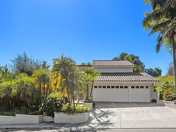 Your love for 22561 Demasia begins as you drive in along the 100+ acre Wilderness Glen park and trail system. If you love being surrounded by nature, have I got a house for you. This is a special lot, privately nestled into the hills with wilderness across the street. Additionally, it is one the most desired floor plans from this era of homes, with the best of all embellishments one could option a property with. We begin with a stately driveway and spacious 3 car garage. Fabulous hard scape adorns the front yard with a wrought iron gate enclosing the verdant front yard. This is a space that will captivate you morning after morning when the sun peeks over Saddleback Mountain which stands majestically above the ridge which separates this home from Lake Mission Viejo just 5 minutes down the road. Relaxation or exhilaration are yours between the resort style pebble tech salt water pool and spa in the back yard, complemented by a built in BBQ set up for at home good times, or you can take the family and friends down to the lake, as you'll be a member. You get all that, and you've yet to set foot in this brilliant 4 bedroom home, with an optional 5th on the main floor if needed in lieu of the existing oversized home office/bar with it's adjoining full bathroom. The formal living room is oversized and looks out upon the front yard through a wide boxed out window which really brings the outside in. The dining room is also sizable and opens up to the pool deck via a set of French Doors. The kitchen does not disappoint and is the hub of the home being open to the family room. This great room space is framed by a connection to the bar and office on one side, and views of the pool and more green nature through a pair of sliding doors out the back of the house. Heading up the sweeping stairs, you'll appreciate the programming of the floor plan. You've got the massive primary suite spanning the full rear of the home, with a large sitting room which exits out to a lovely view balcony. Grand primary bathroom clad with timeless travertine marble, and miles of countertop! (exaggeration) Two of the secondary bedrooms are spacious and well separated from the primary for sound consideration. The other jr. bedroom is on the opposite side, and is also big, with two amazing closets! Wonderful views from nearly every window, and throughout the lush grounds. No fluffery here, this is a quality offering, that you should see for yourself. Well maintained home with pride of ownership.