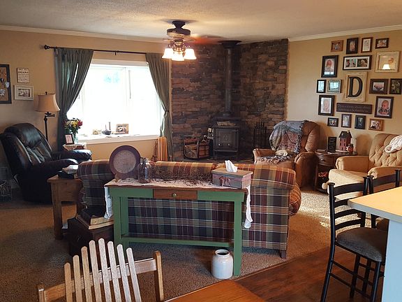 Home was remodeled in 2009. New floors, trim and doors, windows throughout, Front Porch and Garage. Also in 2009 new siding and roof. Furnace and A/C are within 12 years old & water heater is 2 years old. All 2.48 acres are fenced in and divided in half. the back part is a pasture. There are 2 apples and a peach tree. Nice back deck as well. Out buildings consist of a goat barn, chicken coop, and shed.