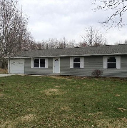 REMODELED RANCH THAT OFFERS AN OPEN FLOOR PLAN WITH 3 BEDROOMS AND 1 BATH WITH AN ATTACHED 1 CAR GARAGE. THIS HOME SITS ON 2 ACRES WHICH 1 ACRE IS ALL WOODS. ALL NEW LAMINATE FLOORING THROUGHOUT, CABINETS, COUNTERTOP WITH AN ISLAND WITH NEW APPLIANCES, NEW ROOF, GUTTERS, DOWNSPOUTS,VINYL SIDING, WINDOWS, HVAC AND HOT WATER HEATER. IMMEDIATE POSSESSION AT CLOSING. LOW MAINTENANCE HOME. THIS HOME QUALIFIES FOR NO MONEY DOWN. CALL FOR YOUR SHOWING TODAY. PRICED AT $149,900.