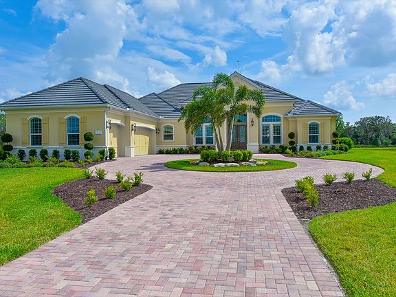 A classic elevation, impeccable landscaping & an attractive circular drive meet to create a lasting impression as you approach this custom Lee Wetherington home. Upon entrance through elegant lead glass double doors, you will be captivated by panoramic views of the lake & private preserve with no homes in sight. A host of rich architectural details embellish the almost 3900 sf of living area, including intricate ceiling treatments, trimmed windows, solid core interior doors, crown moldings, exquisite tile & crema marfil marble floors. Stunning wainscoting in DR, a stone fireplace & built-in shelving in great room creates the perfect spot for gatherings. The heart of the home is the gourmet kitchen featuring Brookhaven staggered wood cabinetry, stainless appliances, stylish center island w/exotic granite, & subway backsplash. Retire each evening to your master suite w/suited walk-in closets & a deluxe bath fit for royalty. Completing the interior spaces are the LR, bonus room in rear & Florida basement w/electronics tower, which is the perfect office space. Pocket sliders in great room & breakfast area gracefully open to reveal a heated saltwater pool w/infinity spa, pavers & outdoor kitchen w/granite, where you will marvel at your spectacular view. Other features include: Leviton home automation system, laundry sink w/granite & upper cabinets, rough-in for generator hook-up, impact glass all around & exquisite light fixtures & window treatments including plantation shutters. Florida Green Certified home.