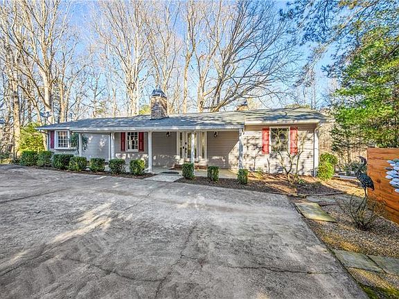 RARE 5.75 PRIVATE ACRES in South Forsyth - NO HOA - the MEGA MANSION on Trammel Rd is your side yard. A remodeled Ranch Home sits on this property w/tons of upgrades - great house for entertaining or chilling out. Open floor plan w/lots of natural light, beautiful hardwood floors throughout, 3 spacious bedrooms, 2.5 baths and a partially finished basement. Remodeled kitchen has 5 burner gas cooktop in the center island with ss overhead vent, lots of cabinets w/pullout drawers, breakfast bar, separate LR w/ fireplace, dining Rm, 2 offices (one in rear and one in front that is currently used as a 4th bedroom), family room w/fireplace, remodeled master suite and bath with 2 granite vanities, seamless glass shower with 2 heads, travertine tile and an eagle claw soaking tub looking out over woods, creek and bridge. All the secondary baths have also been renovated. The 20x36 Deck overlooks the creek and pool entertainment area. Saltwater pool has a large, lighted concrete lounge area and a second wood deck overlooking the creek. Pool cabana house has been renovated with custom tile inside and out for easy cleaning. Cabana house also has custom wood trim, water and electric, pull out shelving, granite countertops and a large granite bar. A 2 car detached garage, fenced yard, 2 outbuildings, flowering trees and shrubs galore complete the compound. The property can be subdivided with road frontage for a 1 - 2 acre building lot without impacting the existing home and amenities. Minutes to GA-400 - Exit 14, shopping, golf, Lake Lanier. South Forsyth schools and taxes. If you are looking for peaceful, private acreage in south Forsyth, this is what you are looking for. 2021-03-12