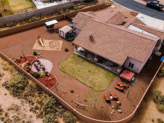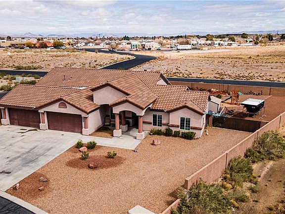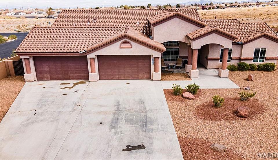 Super cool home in a highly desirable location. Granite Bluffs subdivision is located just a few minutes from Stockton Hill Rd yet is tucked away just enough to provide the peace & quiet of the suburbs. This home sits on a unique lots that is close to 1/2 acre and has NO shared property lines with any neighbors, streets on 3 sides and a utility easement on the last side give plenty of separation and added privacy. The garage can easily fit 4 vehicles or whatever toys you have in your arsenal. The home is very inviting from the grand entryway to the curved walls and open concept floor plan. There are 3 bedrooms and a full bath on one side of the home and the master suite on the other that offers many amenities from a private door to the backyard, large walk in closet, dual sink vanity in the bathroom along with a jetted tub & large tiled walk in shower. The kitchen has a ton of counter space wrapped in granite stone and lot of cabinet space as well. There is a farmhouse style sink, gas stainless steel oven/range built into the peninsula, stainless steel microwave & dishwasher as well...this home offers both a casual dining area as well as a formal dining option which is currently used as a sitting/kids area. The living room is open to kitchen and has a gas fireplace on the wall along with multiple windows providing extensive natural lighting! The backyard is an entertainers delight, with a large covered patio, hot tub off the master bedroom, gas stub that would be ideal to add an outdoor kitchen, and fully landscaped with grass, rock, stone pavers forming an inviting sitting area with a fire pit and delightful views of the Hualapai Mountains. The side of the home also provides for RV parking with full hookups. This home truly has so much to offer, you must see it in person to fully appreciate it!