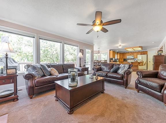 SELLER HAS RECEIVED MULTIPLE OFFERS.. ALL OFFERTS TO BE REVIEWED AT 5 TODAY. Custom built home in wonderful area of Layton in calm quiet cul de sac. Immaculate, one owner home looks like new. Beautiful oak floors, new carpet, elegant acid finish black marble flooring in upstairs bathrooms.Convenient laundry chute from upstairs hall to laundry room closet.Heated Garage is wired with 220 & easily accommodates 4 to 5 cars. HUGE RV pad for boat, trailers etc and additional parking areas.50 Year tiled roof in excellent condition. New water heater in 2019, most of exterior stucco resurfaced in 2019. Extended master bedroom could be converted to a 4th bedroom. Enjoy the private deck with views of the mountains.Full finished basement is roughed in for future bath, installed seperate electrical panel and wide rear walkout . Utopia is available in their area.